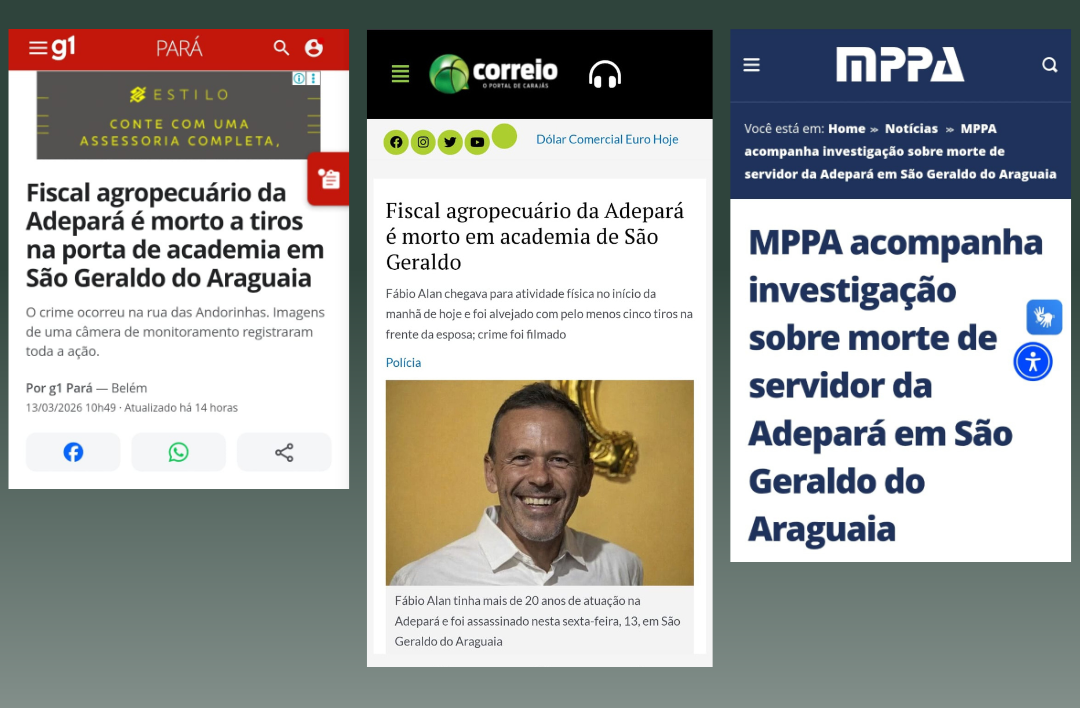 Imagens: print de notícias do portal Correio de Carajás, G1 Pará e MP do Pará