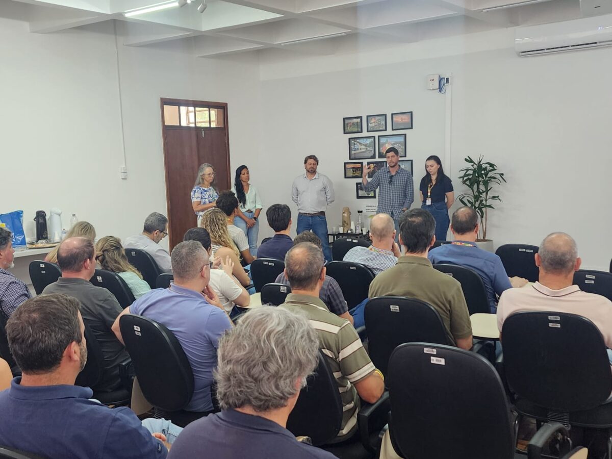 A nova diretoria da Afagro conversou com Fiscais Estaduais Agropecuários da área vegetal nesta terça-feira (25/11), no auditório da Seapi, durante a Reunião Anual do Departamento de Defesa Vegetal (DDV). O presidente da Afagro, Giuliano Suzin, e a vice-presidente Carolina Scienza, falaram sobre as demandas da categoria e as propostas de trabalho da gestão para o biênio 2026/2027.